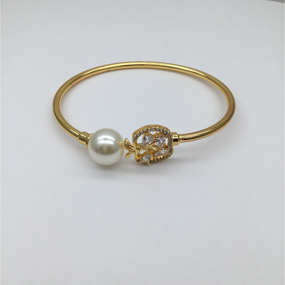 Be the first to review “Gold Open Rose Diamante Pearl Tip Bangle”